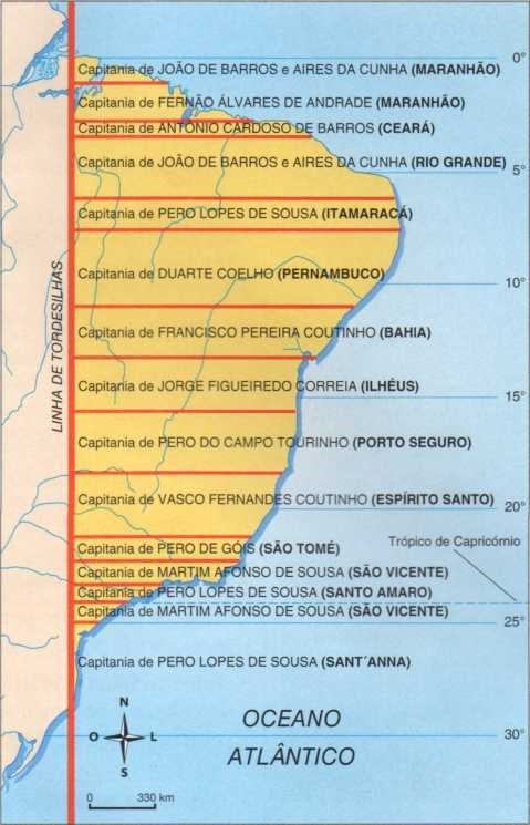 Em 1532, o rei dom João III decidiu aplicar na colônia da América uma divisão administrativa que havia dado bons resultados nos Açores e na ilha da Madeira: o sistema de capitanias hereditárias.